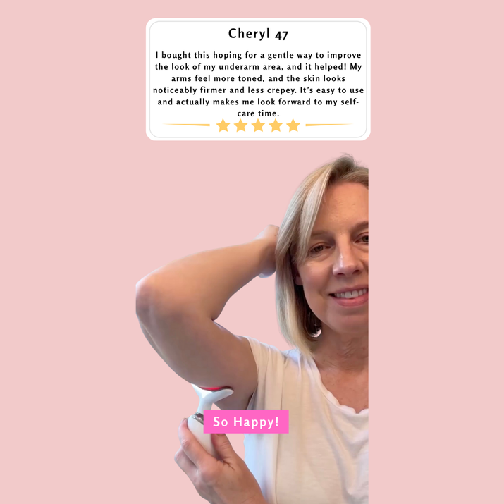 Our advanced device combines gentle EMS muscle stimulation with 7 customizable LED light therapy modes to target sagging, loose skin where it matters most. In just 10–15 minutes a day, you'll experience visible firming, smoother texture, and the lifted appearance you thought was gone for good. Perfect for arms, neck, and face.